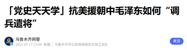 4·乌鲁木齐网警-《「党史天天学」抗美援朝中毛泽东如何“调兵遣将”》