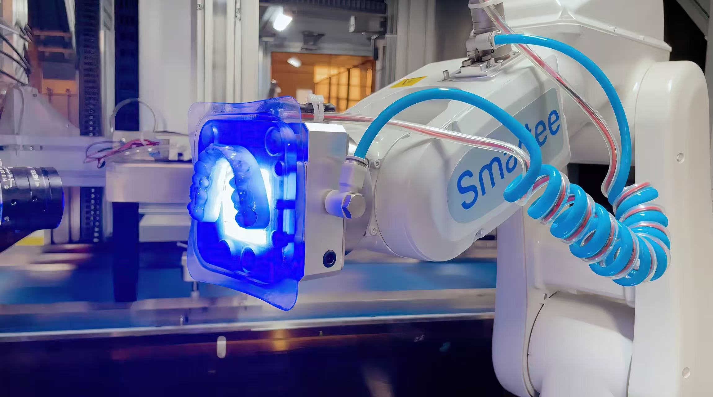 正雅于2021年率先建成寰宇第一条隐形矫治器全自动出产线,杀青了从牙模3D打印到矫治器制品包装的完满闭环。受访者供图