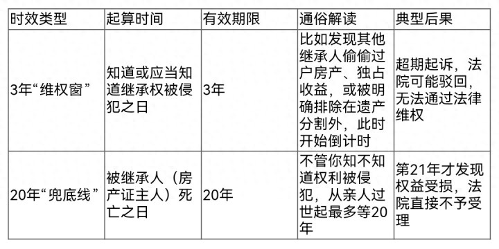 许多东说念主误觉得“不外户超过几年,接纳权就没了”,这是典型诬陷。接纳权从亲东说念主过世那一刻起自动奏效,独一你是法定接纳东说念主,且没作念过丧失接纳权的事,权柄就一直存在。但法律给“维权”设了明确时限,超过就可能无法通过法院要回房产: