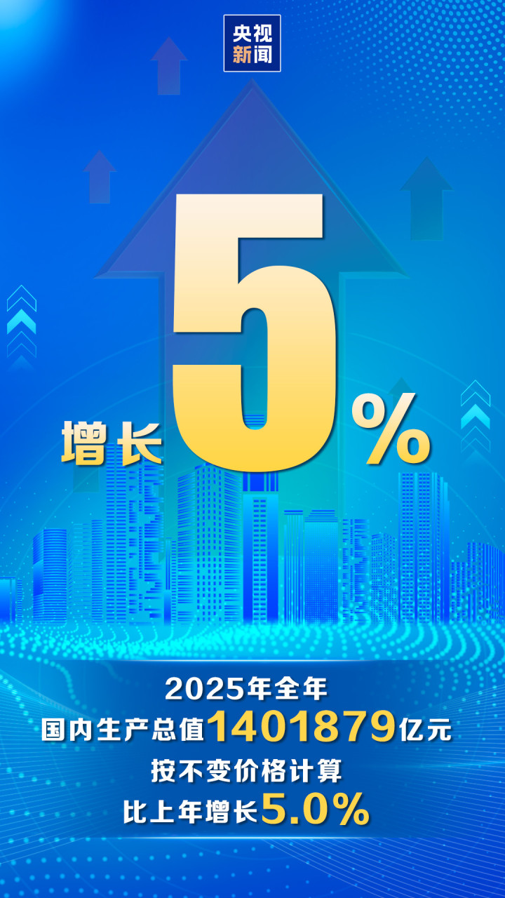 今天上午,国务院新闻办举行新闻发布会,国家统计局局长康义介绍,2025年,国民经济运行顶压前行、向新向优,高质量发展取得新成效,经济社会发展主要目标任务圆满实现,“十四五”胜利收官。初步核算,全年国内生产总值1401879亿元,按不变价格计算,比上年增长5.0%。