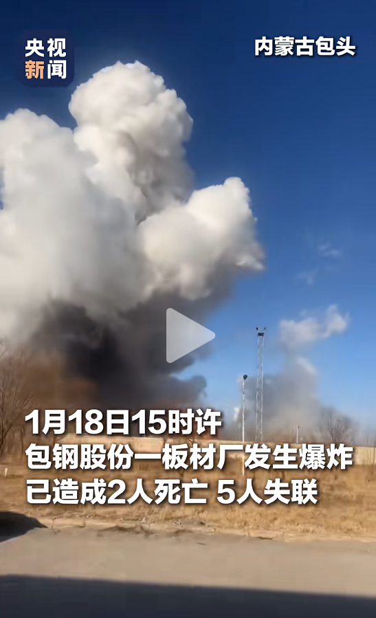 央视新闻消息,1月18日15时许,内蒙古自治区包头市包钢稀土钢板材厂发生爆炸事故。消防救援人员正在现场紧急救援中。