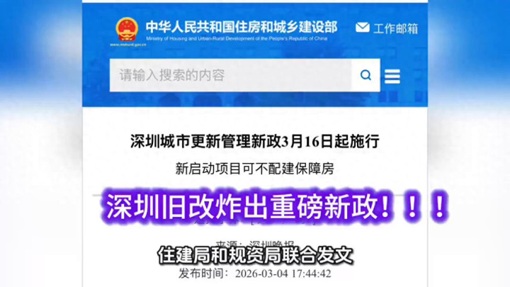 {jz:field.toptypename/}家东谈主们,深圳楼市又扔出一颗重磅炸弹,住建局和规资局商量发文,城市更新新政来了,3月16号认确凿施,一用即是5年。这条策略到底对谁成心?对你买房有什么影响?先给民众说要点,此次新政中枢就两件事:给开发商减负,让旧改快起来,标的很平直,周转停滞形势,拉动房地产灵验投资。
