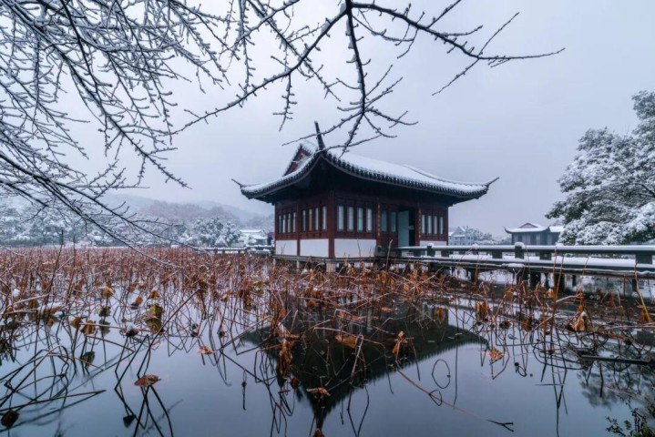杭州花圃的雪,是一首精巧绝伦的朦胧诗,以令人惊叹的耐心,为每一处景致细心勾边。