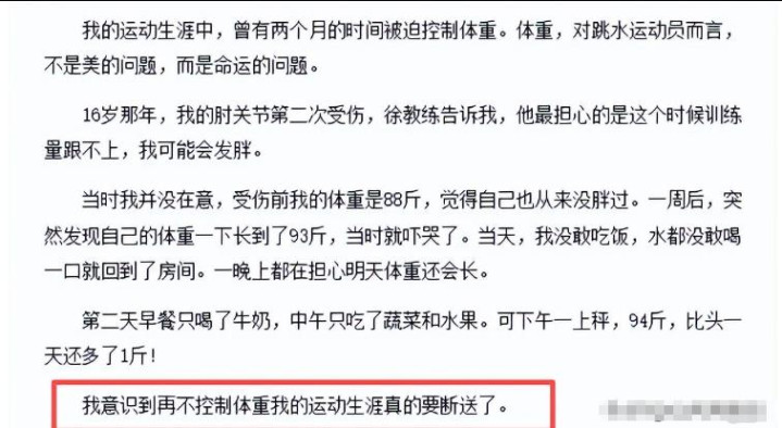 她17岁才迎来第一次生理期,比世俗女孩晚3到5年,这是她从14岁起,为守住跳水梦极致控重、阻挠发育的反噬。