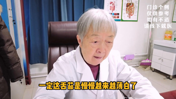 从发的舌头照片,舌苔是白厚的,脾胃没那么好。现在吃少了,都还没那么好。除了没有不舒服的症状以外,舌苔是慢慢越来越薄白了,说明脾胃的功能修复好了。那时候多吃一口没有什么不舒服,想长点肉也可以。但是舌苔厚的时候千万别去补,越补越厚,因为它干不了这么多活,非给它再吃一些补的,一些再油腻的东西补,那就更厚了,病就更难好了。