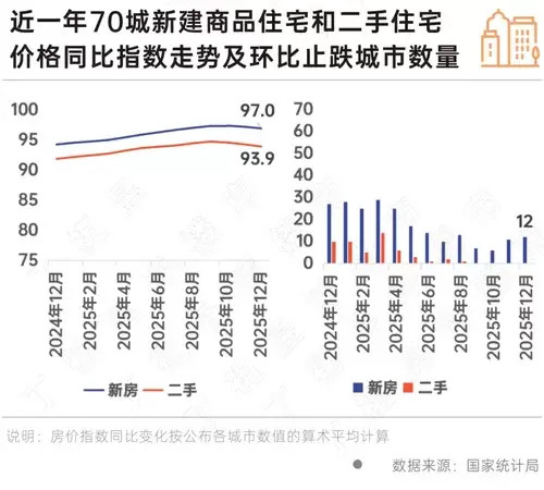 国家统计局数据显示,2025年12月份,70个大中城市商品住宅销售价格环比总体下降、同比降幅扩大。