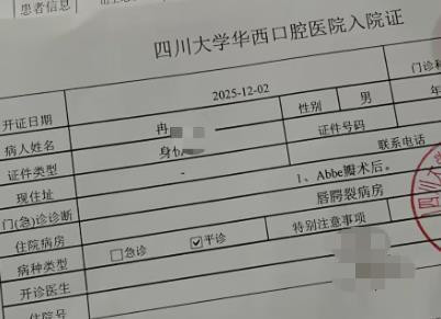 冉先生介绍,他从基金会得知可以选择定点医院,他选择了距离贵州较近的四川大学华西口腔医院,他在2025年11月和12月分别接受了一次手术,其间他仅自费支付了路费和最初入院的个别检查费用,手术费用都由基金会支付。由于费用基金会会直接支付给医院,两次手术的详细花费他并不是很清楚,他听医生介绍,第一次手术费用在数万元,第二次手术仅需几千元。