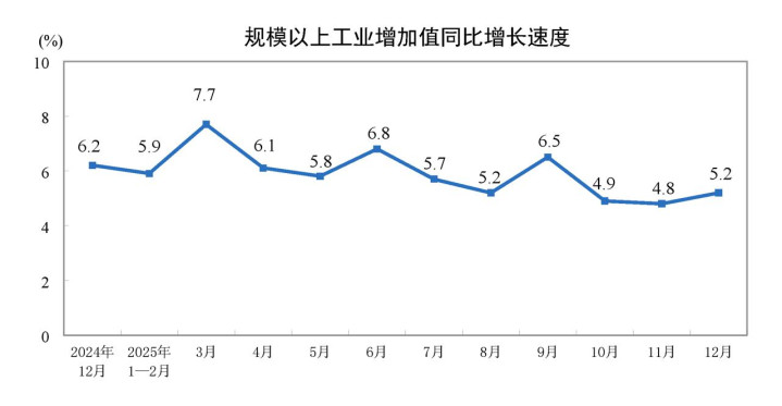 国家统计局19日发布数据显示,我国工业生产较快增长,装备制造业和高技术制造业增势较好。2025年,规模以上工业增加值比上年增长5.9%。