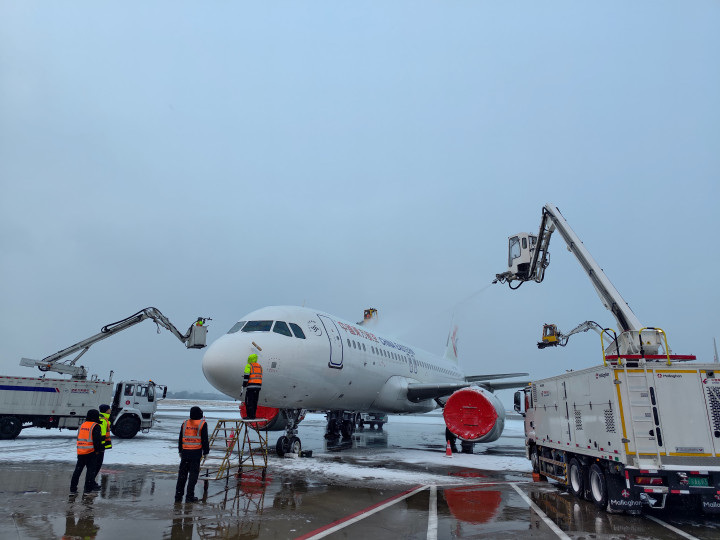 受到小雪天气影响,1月20日南京禄口机场东航航班出现轻微延误情况。为确保航班的安全运行,东航江苏公司组织除冰车为每一架起飞的航班开展除冰雪作业,在航空器下方采用人工除雪的方式除雪,与航空器有安全距离的区域采用除雪车除雪。目前第一个航班MU2721已经安全起飞。