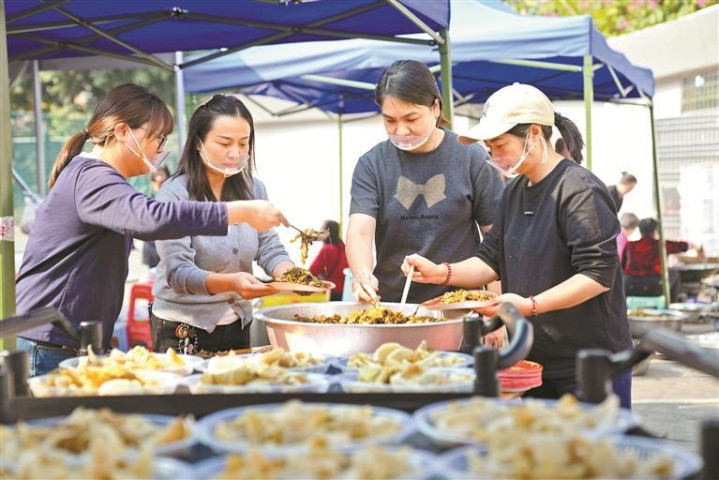 锣鼓一响,灶火升起,松岗街道溪头社区一年一度的酸菜节如期而至。大院支起灶台,圆桌全部排开,村民把腌制的酸菜端出来,切、炒、煮轮番上阵。酸香顺着巷道散开,不少老街坊循着味道赶来,围在灶前看火候、聊做法。