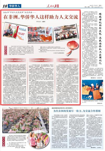 2026年是中非开启外交关系70周年。日前,2026年“中非人文交流年”开幕式在亚的斯亚贝巴非盟总部举行。在非华侨华人长期作为中非交流民间纽带,通过文化传播、教育合作、社区融入等多种方式推动中非民心相通。本报记者近期采访了多位长期扎根非洲的华侨华人,听他们讲述见证中非友谊、推动中非人文交流的故事。
