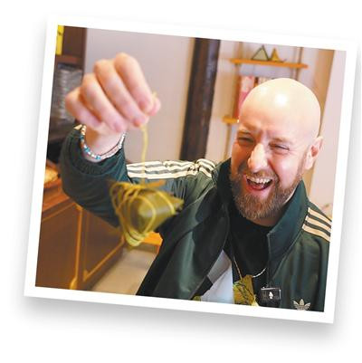 现在我早不是新手了,咸蛋黄肉粽包得有模有样,一口下去满满都是幸福感,一次吃4个都不腻。7年间,我吃了几百个粽子,朋友们总说我“吃得太多了”,而我却乐在其中。我还尝试设计了一款印有粽子图案的T恤。在我看来,粽子虽小却包罗万象,蕴含着历史文化记忆,也展现出中国人的饮食智慧。