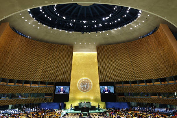 联合国大会堂内景会议现场(对应“联大落幕、美方签证会费争议”段落)