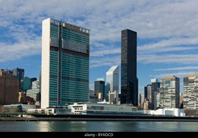 纽约联合国总部大楼外景(对应“美国总部地位动摇”段落)