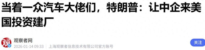 但让人没想到的是,特朗普随后话锋一转,重申他对外国汽车制造厂赴美建厂的开放态度,并对着中国汽车企业喊话称:“让中国进来!”