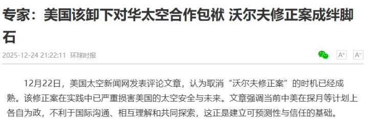 进入2025年,美国航天界内部对“沃尔夫条款”的反思声浪日渐高涨。7月的一份报告直言不讳:死守该条款将引发严重的负面后果。玛吉尔顿更是直截了当地点明:是时候终结这道禁令了,因为它不仅没能阻挡中国,反而让美国自己喘不过气来。