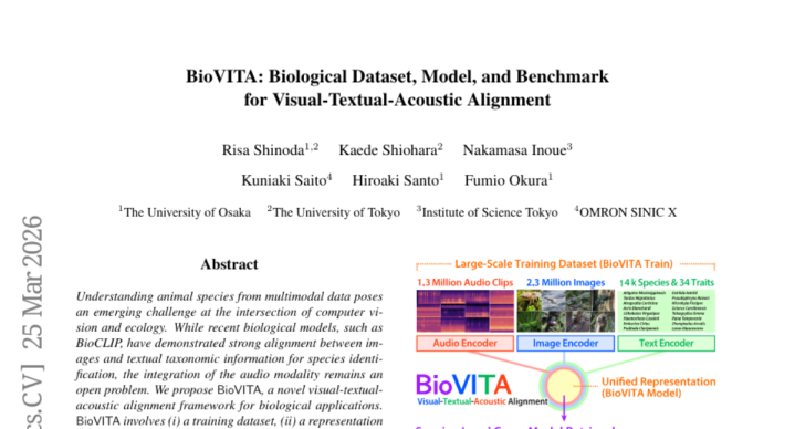 大当然中的动物们领有着各自独到的"身份证"——有的靠清秀的羽毛展示我方,有的通过特地的叫声传递信息,还有的则以独到的步履模式闻明于世。永久以来,科学家们就像是在翻译一册莫得字典的多说话百科全书,试图和洽这些不同"说话"之间的关联。刻下,一个由大阪大学、东京大学、科学本事东京究诘院和OMRON SINIC X连合构成的究诘团队,告捷开发出了全国上第一个大约同期"听懂"动物叫声、"看懂"动物外不雅,并"和洽"生物学笔墨描绘的智能系统BioVITA。这项打破性究诘发表于2026年3月的计较机视觉与模式识别会论说文集,编号为arXiv:2603.23883v1。