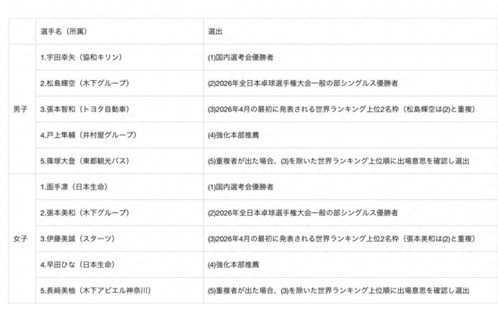 日乒公布了2026年亚运会的男女团体赛名单体,男队的团体赛威望是:张本智和、松岛辉空、户上隼辅、宇田幸矢、篠塚大登。女子团体赛的威望是:张本好意思和、早田希娜、伊藤好意思诚、长崎好意思柚、面手凛。只不外单打、双打、混双的限额要到5月份才会公布,大藤沙月刚刚在太原挑战赛夺冠,却无缘投入此次亚运会的比赛。